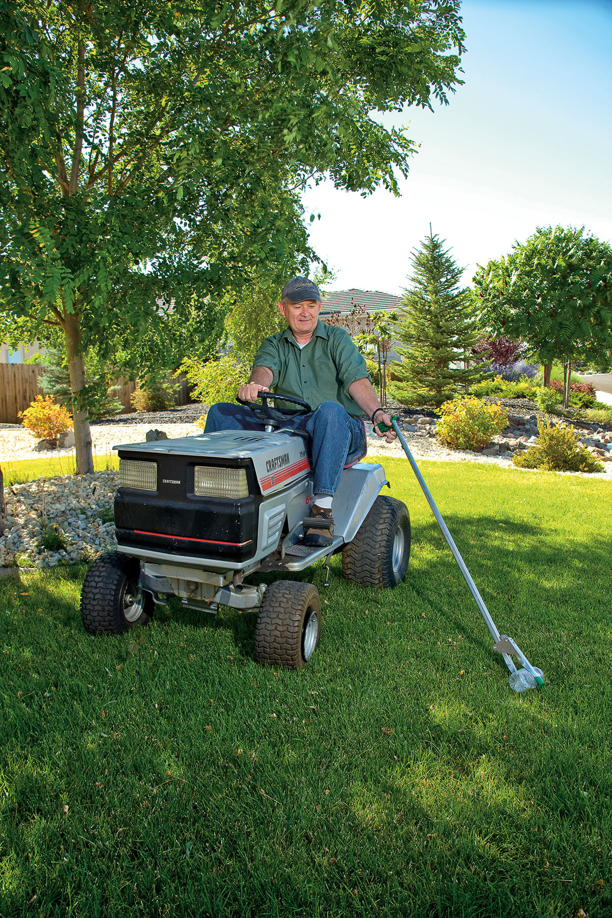 - Efficiency. The Grappler is great for mass clean-ups or yard pick-ups. Its ease-of-use and effective design make picking up trash faster and more straightforward than ever before. For example, the Grappler is perfect for riding lawnmowers. Need to remove a branch or a children’s toy? Use the Grappler and never leave your seat.