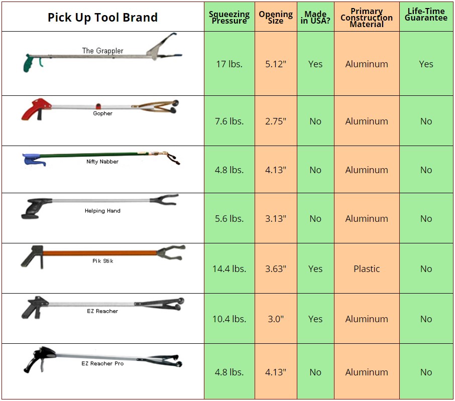 While the EZ Reacher may be a great household tool to use for very lightweight items, it’s not a safe bet when it comes to anything weighing over just a few ounces. Those who are looking for a great quality reaching tool to pick up kitchen items like cans, dishes, pots or outdoor work like picking up litter and trash should stick with the Grappler. Proven tough and strong enough to handle big jobs, the Grappler consistently outshines its competitors and performs well with all sorts of tasks.